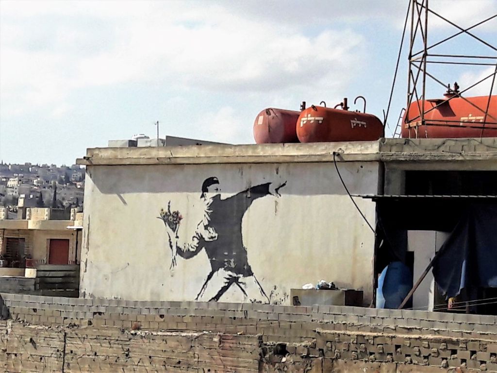 On our way to the factory we saw our first of many Banksy artworks: a masked protestor with a bunch of flowers in Molotov Cocktail pose. Banksy’s Walled Off Hotel was the much-anticipated next stop.