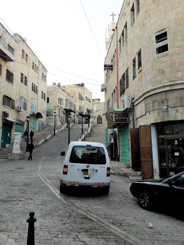 Organised tour versus independently via public transport? Our Palestinian driver had special permission to travel between the two entities, therefore no changing of bus. Likewise, we didn’t have to go through a checkpoint. Bethlehem is a large town and not easily walked. It’s possible to get a public bus from East Jerusalem bus station but, unlike tourist buses, these vehicles do not bypass checkpoints.