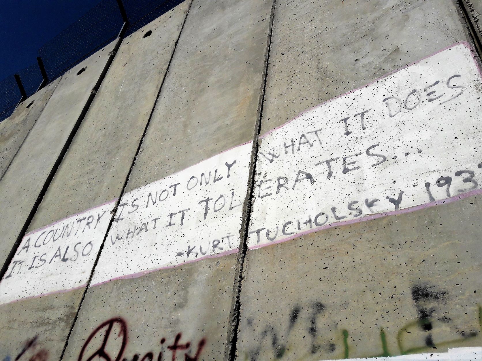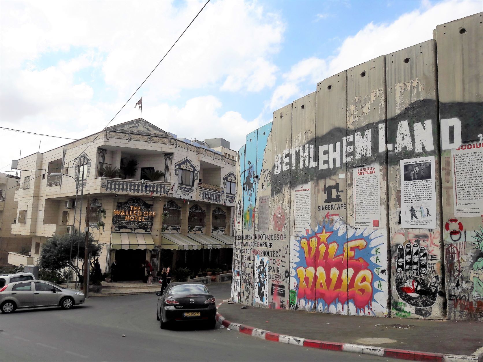 The structure that gives the hotel its worst view accolade is the 8 metre-high reinforced concrete wall built by the Israeli government to separate the West Bank area from Israel, although in many parts it separates Palestinian communities from each other. The United Nations condemns the wall and the International Court of Justice deems the wall a violation of international law. Even the terminology surrounding this structure is fraught and it is known by many names as this Haaretz article describes.