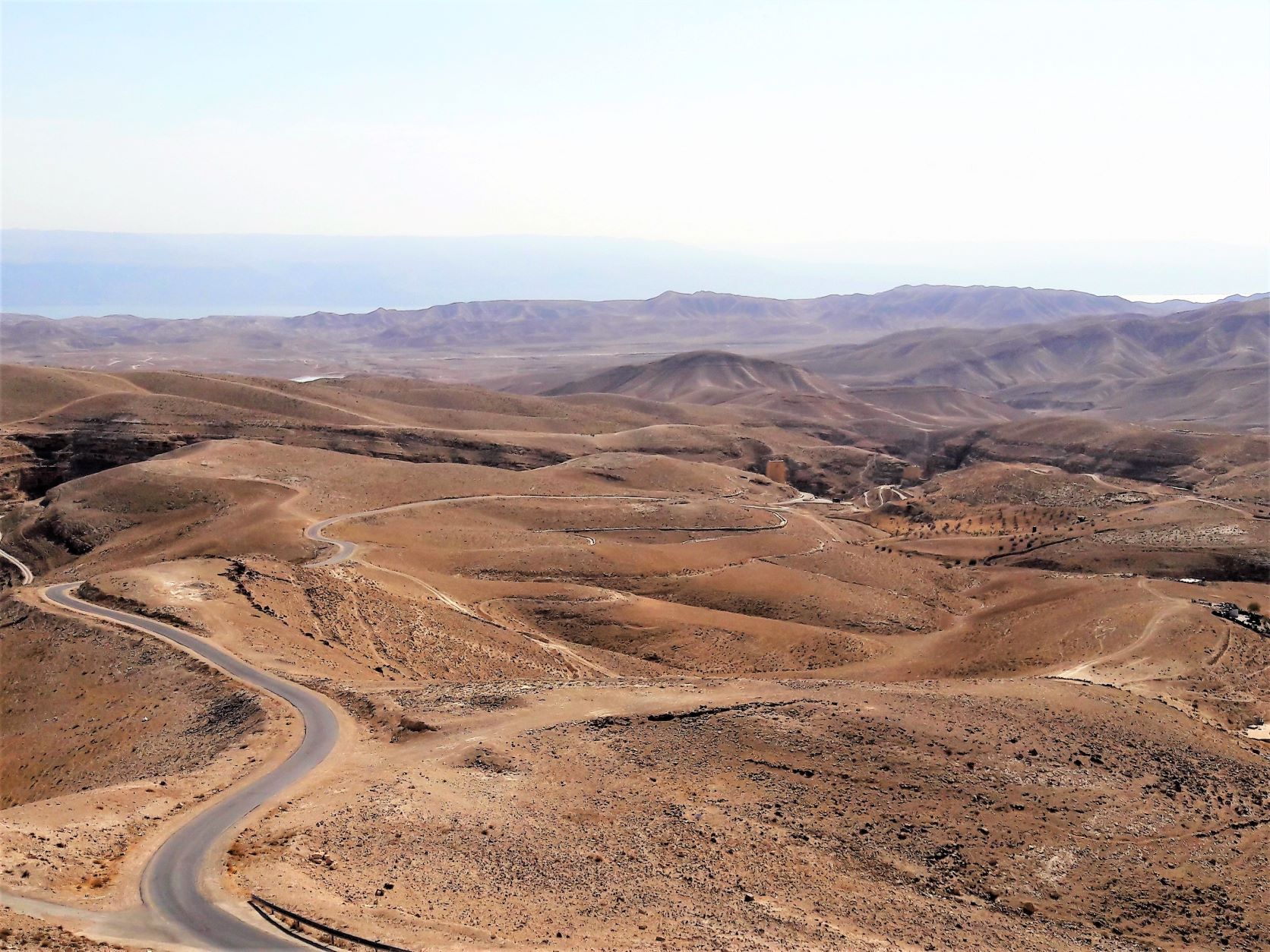 Our bus continued through small urban areas in the direction of the morning’s eastern sun. Mar Saba Monastery in the Judean Desert was our next stop and it wasn’t long before the desert scenery presented itself. In the distant background lay the Dead Sea and Jordan.