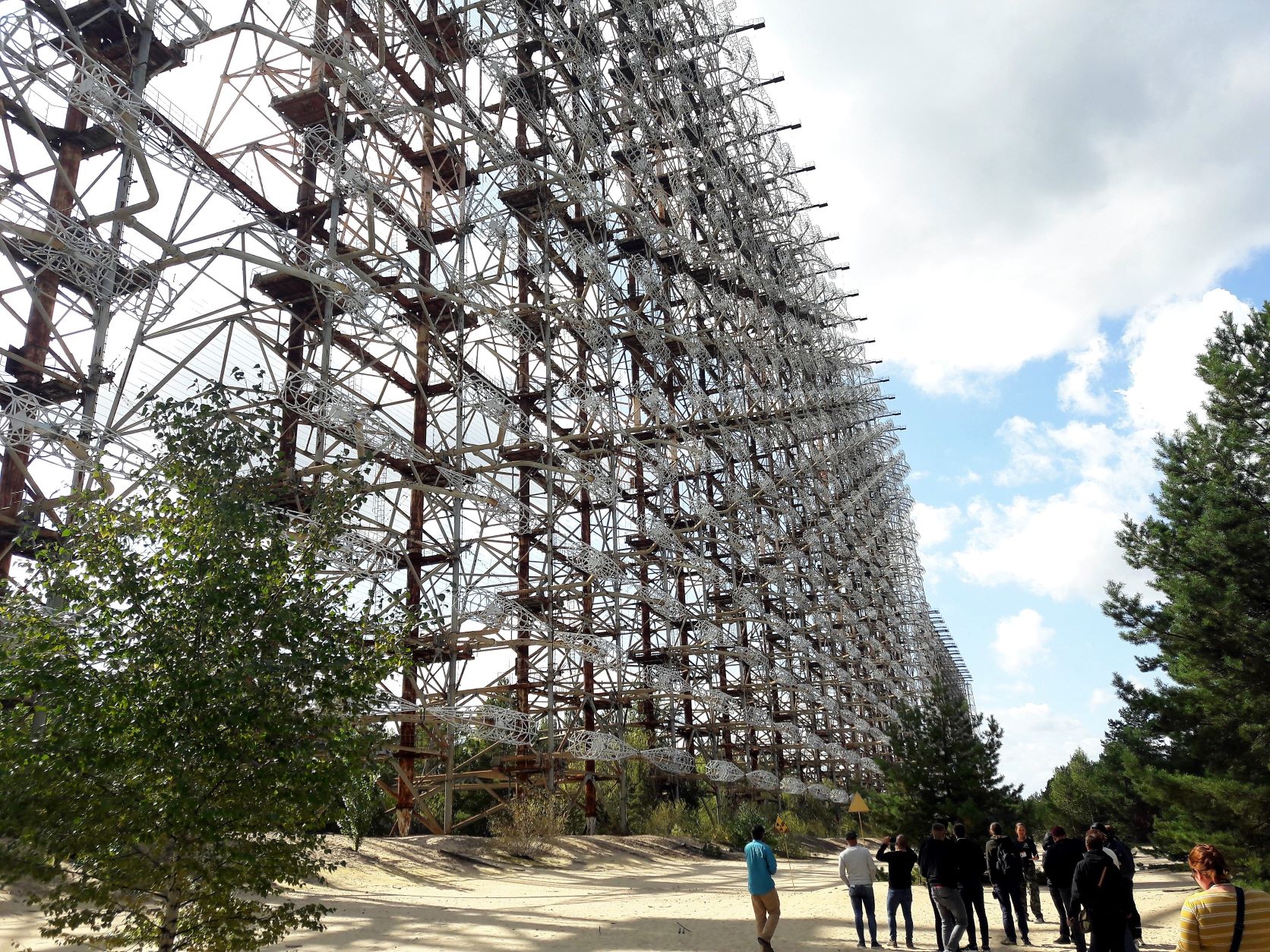 Our next stop was Duga Radar 1, the towering former Soviet missile detection station. Located at the end of a concrete road in a densely wooded area (a classic soviet military type of location, apparently), this steel mesh antenna is a neck-achingly 150m in height.