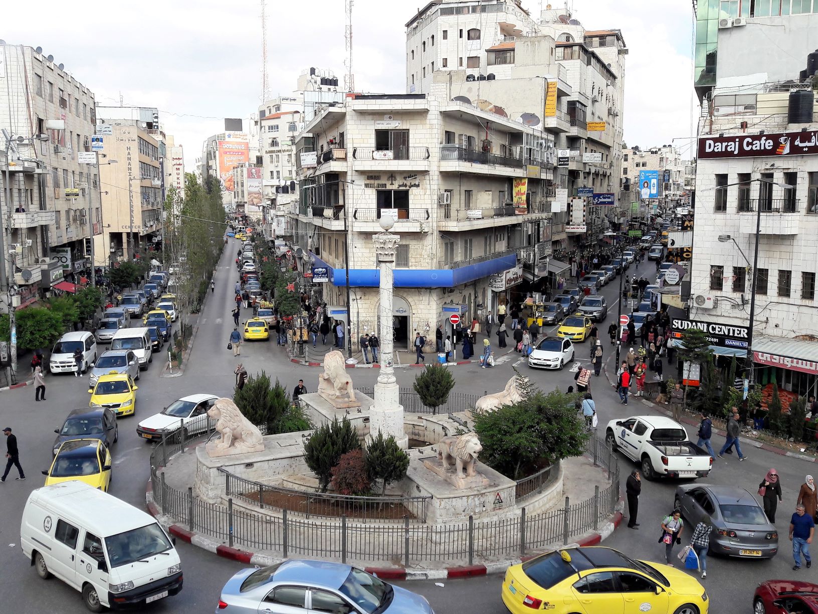 The bus took a circuitous route around Ramallah. We hit heavy traffic, the bus edging its way towards the city centre among the hooting of horns and general chaos. The bus station is conveniently located a couple of minutes from Al Manara Square, considered to be the centre-point of Ramallah.