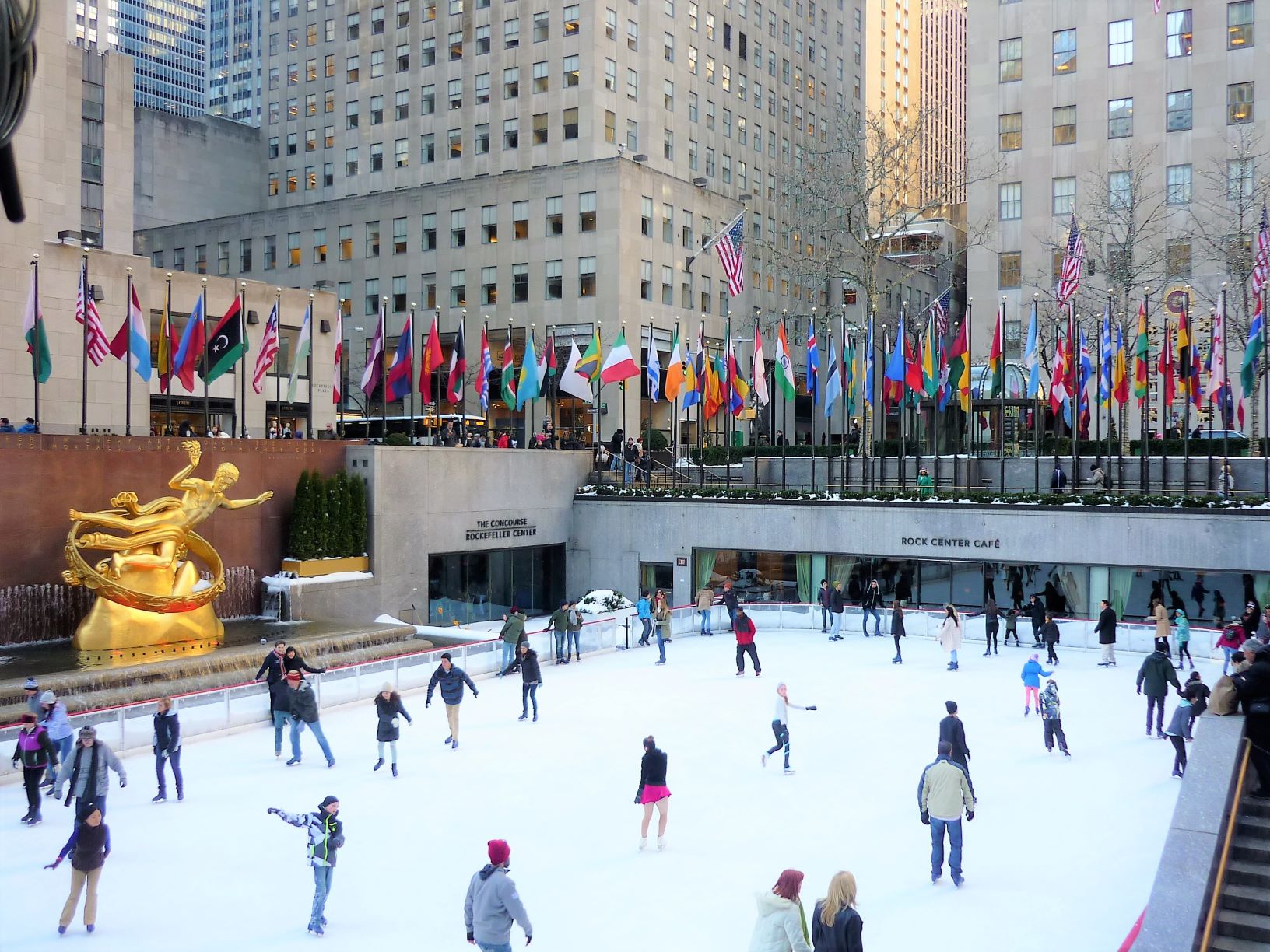 The flagship building is the skyscraper at 30 Rockefeller Plaza, nicknamed 30 Rock, home to NBC studios and the Top of the Rock observation deck. The famous Lunch atop a Skyscraper photo was taken during the construction of 30 Rock. The centre’s skating rink is one of the most photographed in the US.