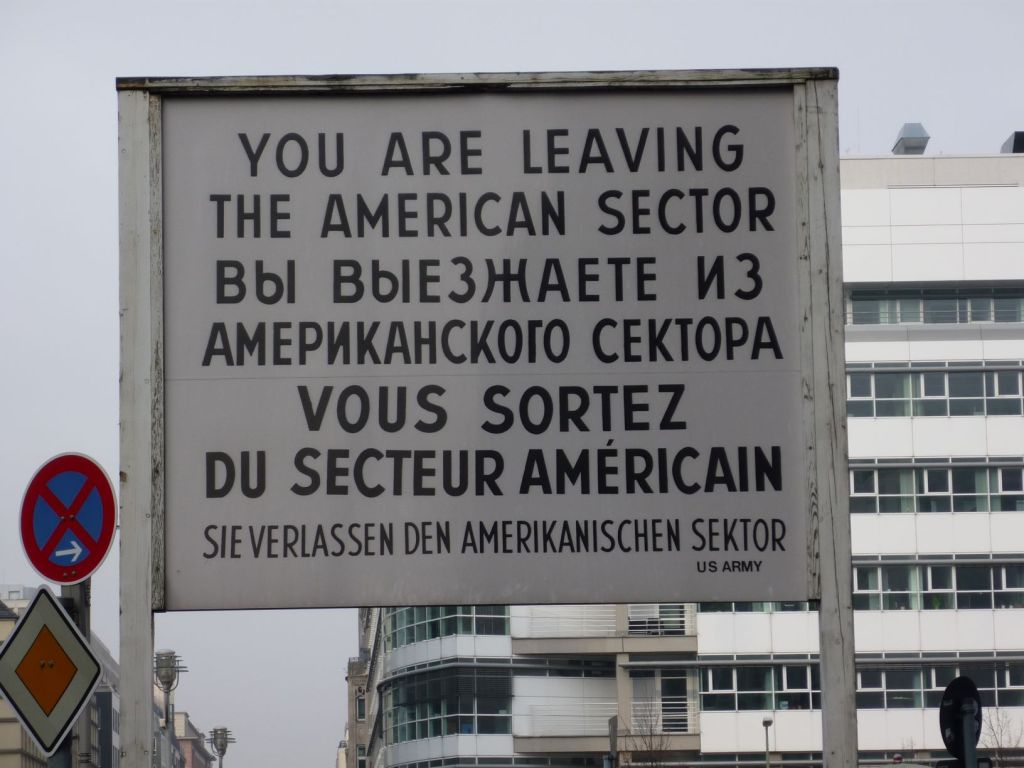 The most famous crossing point of the Berlin Wall connecting East Berlin with the American sector of West Berlin.