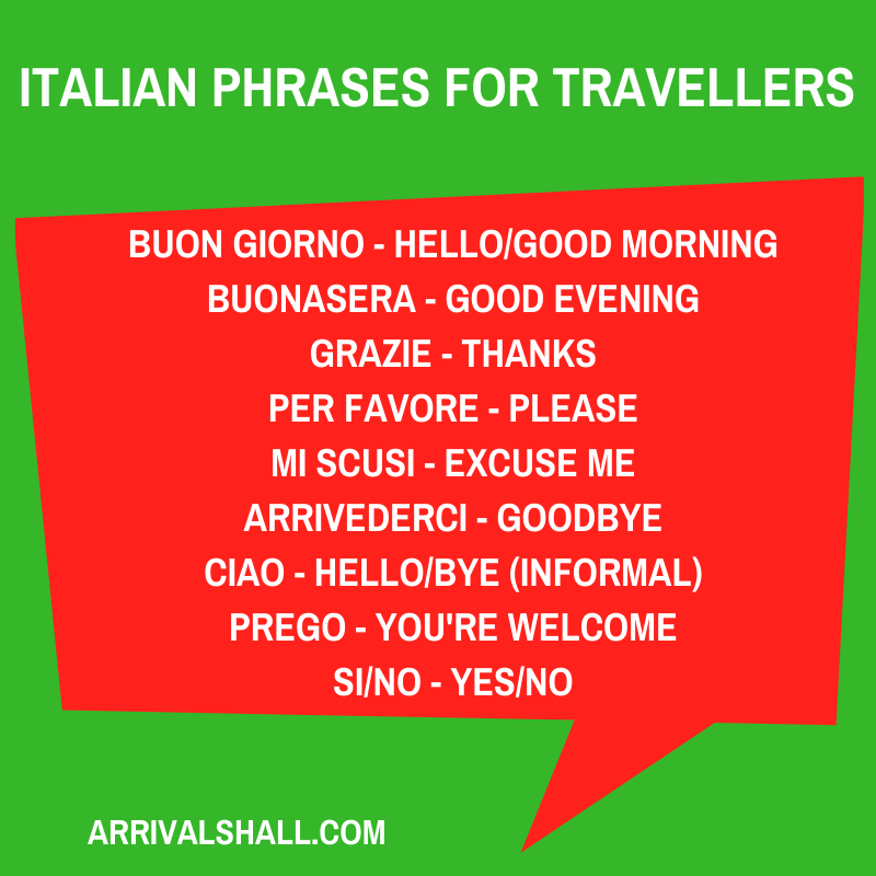 Saying that, if you have knowledge of Spanish or French then Italian will be significantly easier for you to understand and learn as all three stem from Latin. English fluency isn’t all that common in Italy so be prepared to do some homework prior to your visit. Here are some common Italian phrases for tourists with their English translation: