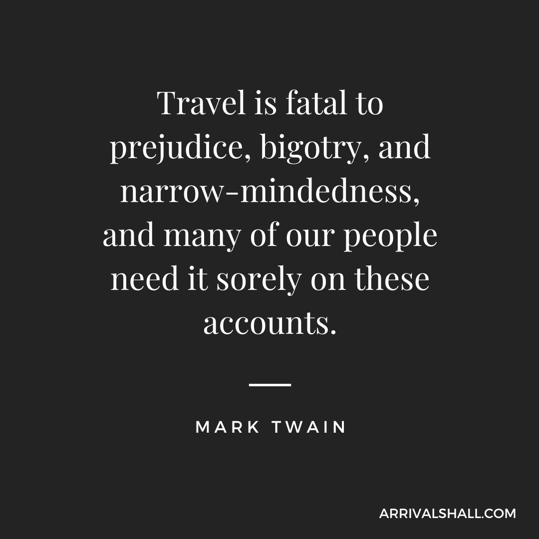 Travel is fatal to prejudice, bigotry, and narrow-mindedness, and many of our people need it sorely on these accounts.