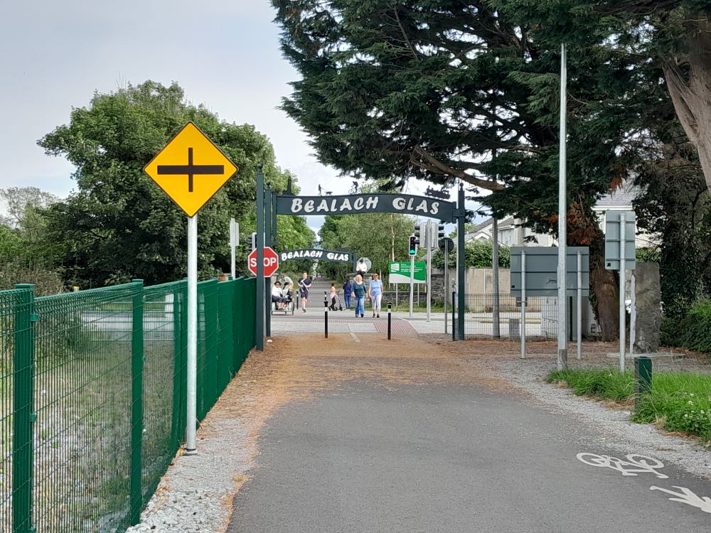 From Oakpark Road, the greenway runs along the back of An Sean Mhuileann and Dunnes Stores NCR where it exits onto an equally busy Upper Rock Street. Thankfully, there are traffic lights here where you can travel by the small retail car park and re-enter the greenway by the Top Part shop.