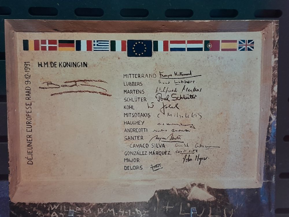 There is also an area dedicated to the Maastricht Treaty, the foundation treaty of the European Union. Included here is the original desk that the treaty was signed on, photographs and signatures of the twelve EEC leaders who signed it, and other memorabilia. If you come from one of the twelve founding countries, this is an interesting display.